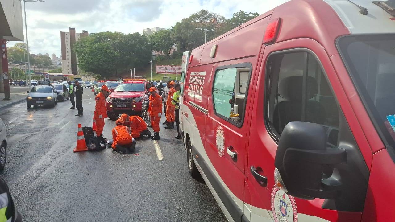 Na manhã desta sexta-feira (24), uma equipe do Corpo de Bombeiros Militar da Bahia (CBMBA) interrompeu o trajeto de uma viatura para prestar socorro a uma vítima de acidente na Avenida Mário Leal Ferreira (Bonocô), em Salvador. O grupo, que seguia com alunos soldados para o primeiro dia de estágio, pertence à Coordenadoria de Formação e Aperfeiçoamento de Praças (Cfap) e se deparou com uma colisão entre uma motocicleta e um carro de passeio.