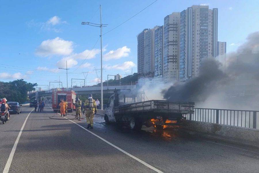 Um caminhão pegou fogo na tarde desta quinta-feira (3), nas proximidades do Shopping Bela Vista, em Salvador. De acordo com o Corpo de Bombeiros, ninguém ficou ferido. As chamas foram controladas por volta das 16h.