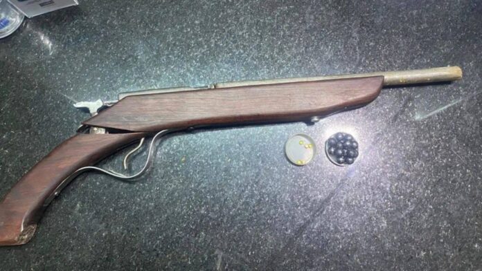 Na abordagem, foram apreendidos uma espingarda, 13 projéteis, um frasco de pólvora e cinco espoletas. Todo o material foi recolhido pelos policiais.