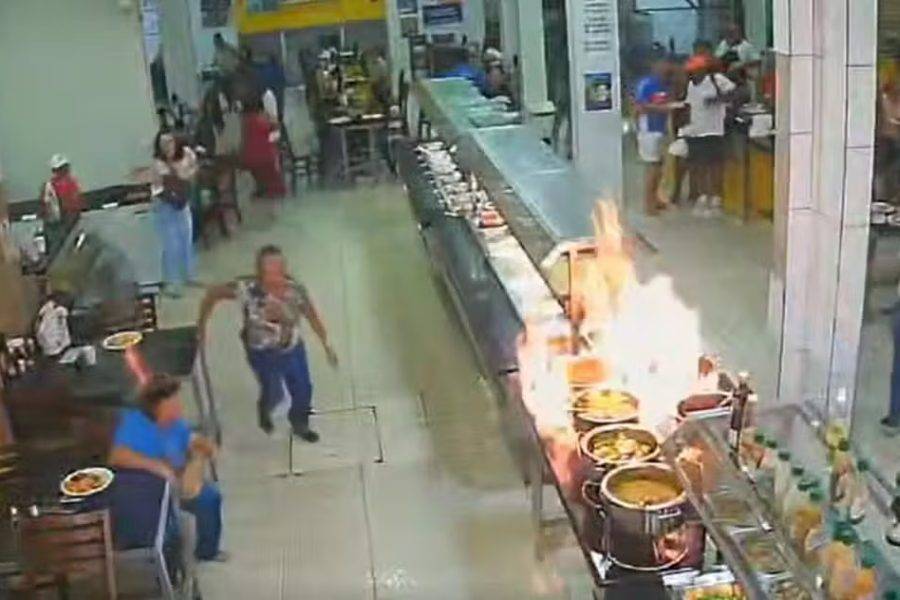 Um vídeo de uma câmera de segurança registrou a explosão que feriu sete pessoas em uma churrascaria em Mar Grande, na cidade de Vera Cruz, na última segunda-feira (15). Nas imagens, é possível ver o momento em que uma funcionária acende uma panela com álcool no buffet e o recipiente explode.