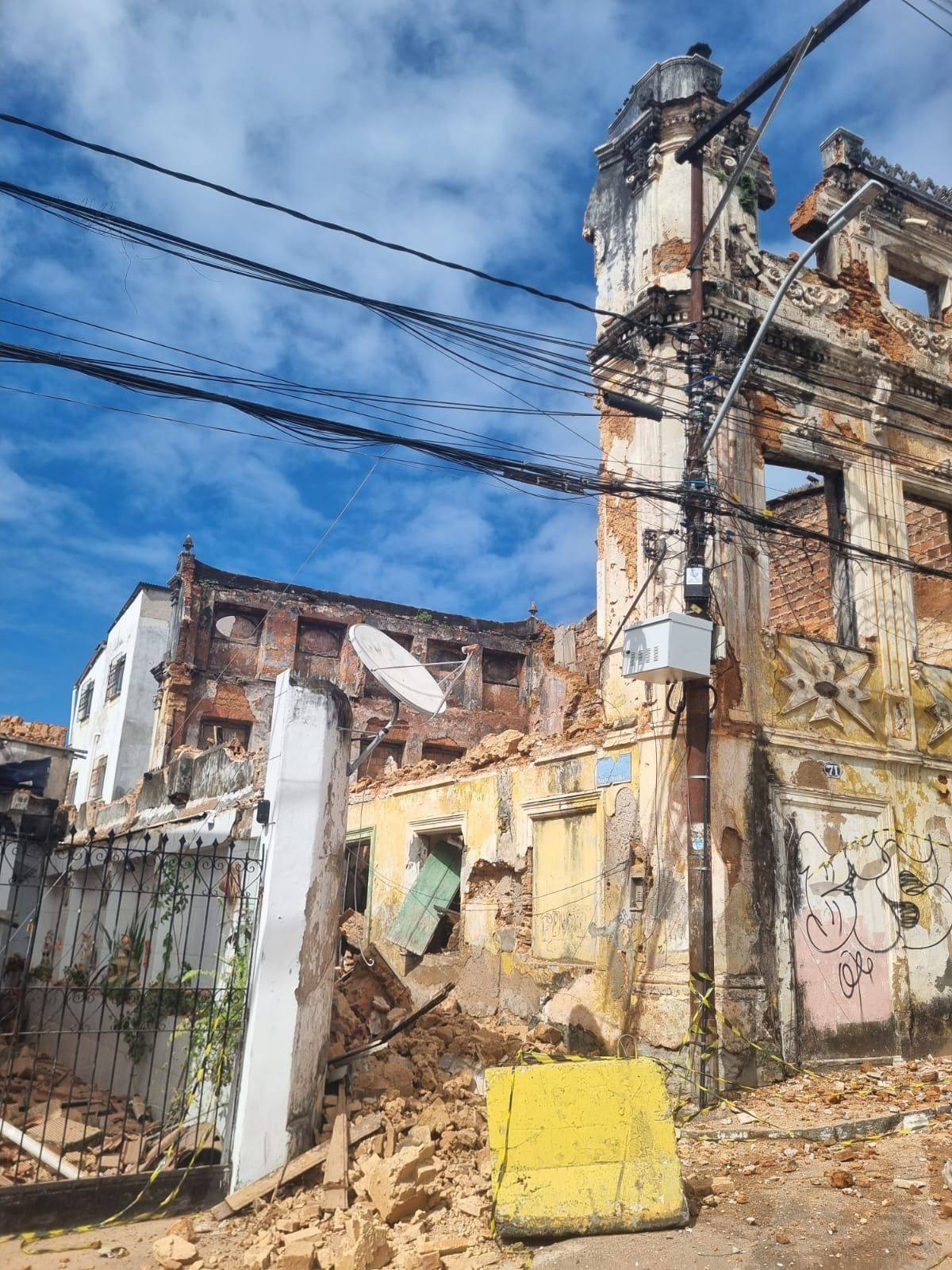 O imóvel, que já havia sido atingido por um incêndio em fevereiro deste ano, teve parte de sua estrutura interna comprometida após um desabamento ocorrido no último domingo (22). Após vistoria técnica realizada pela Defesa Civil de Salvador (Codesal), o Iphan autorizou a demolição da parte superior do casarão, considerada condenada neste primeiro momento.