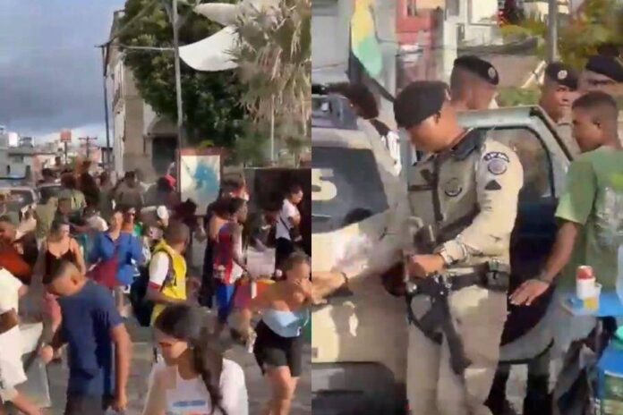 Segundo informações, momentos depois Políciais se aproximaram da ação e chegaram a levar um levar um dos participantes detido. Testemunhas relatam que houve momentos de confronto e até mesmo foi utilizado spray de pimenta para conter o ato.
