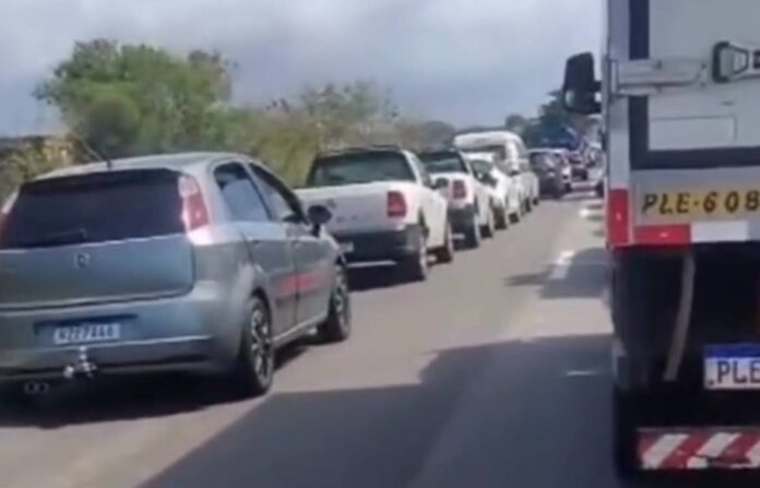 O bloqueio começou por volta das 8h, na altura do Posto da Polícia Militar da Rodoviária Estadual. Motoristas relataram que ficaram mais de uma hora parados no congestionamento provocado pela manifestação.