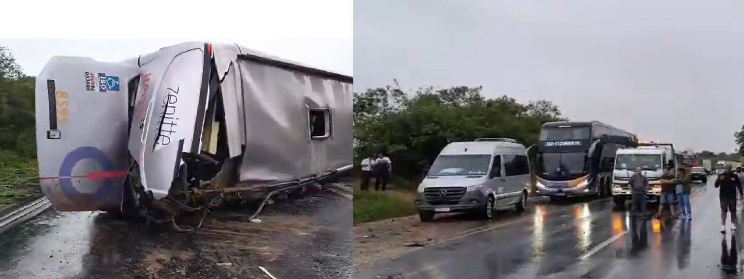De acordo com as primeiras informações, o motorista relatou que perdeu o controle da direção ao contornar uma curva. O ônibus teria atingido um barranco às margens da rodovia antes de virar. A suspeita é de que chovia no momento do acidente.