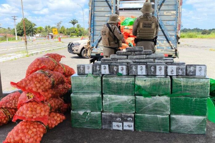 Segundo a polícia, o veículo desobedeceu ordem de parada na BA-0502 e foi interceptado após acompanhamento. Durante a vistoria, os agentes localizaram os tabletes de cocaína ocultos entre a carga.