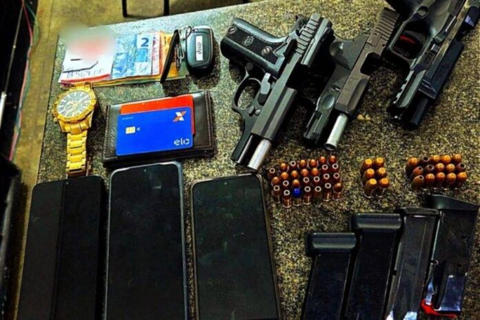 A abordagem ocorreu por volta das 17h50, no km 227 da BR-101. Os policiais pararam um veículo ocupado por três suspeitos e, durante a vistoria, localizaram três pistolas prontas para uso, 48 munições de calibres 9mm, .40 e .380, quatro carregadores, porções de maconha e haxixe, além de celulares e dinheiro em espécie.